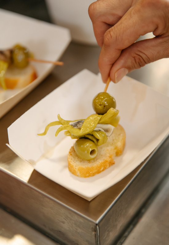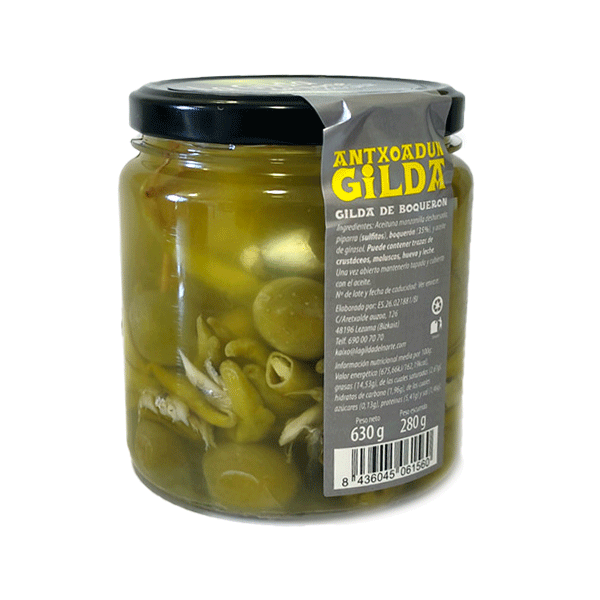 Nuestra Gilda de Boquerón reinterpreta el clásico pincho vasco con un giro más suave. Sustituimos la tradicional anchoa por delicado boquerón, manteniendo el equilibrio perfecto entre la aceituna, el guindilla y reduciendo la intensidad salada y picante. Una versión refinada que conserva toda la esencia del aperitivo emblemático español.